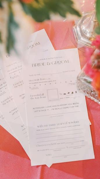As you ip through this issue, know I’m excited for you to explore every page, starting with our real moments! The one connecting theme I found as I read through all the submissions, is how each couple made the day their own, creating unique experiences, each celebrating their oneof-a-kind history. As you read their stories, you’ll see there’s not a “one size ts all” approach, and I hope you can imagine possibilities for your own celebration. I am always so inspired by the work of the talented local wedding professionals who so graciously shared their vision and creativity, not to mention some great advice for making your own statement!