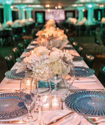 Think bold, beautiful linens, pattern play throughout the design, and layered elements. A focus on gorgeous details that extend to even the smallest tabletop details. We love to see planners design place settings with interesting texture. If you’re guest list is large, think about a statement head table or even a sweetheart table. We love the idea of incorporating heirloom china and crystal into the tablescape for the couple. It’s a unique way to honor parents or grandparents.