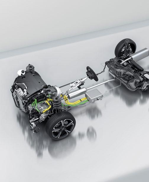 de uso de vehículos con etiqueta ECO del a DGT, sino de una verdadera reducción de consumo y una clara mejora de la respuesta mecánica respecto a anteriores motorizaciones exclusivamente térmicas. Un motor de eléctrico de 28 CV integrado en la nueva caja de cambios e-DCS6 de doble embrague y seis velocidades, una batería de iones de litio de 0,43 kWh útiles, así como moderno motor de gasolina adaptado a las características de un sistema híbrido conforman una unidad mecánica de 136 CV y 230 Nm de afinado rendimiento y gran placer de uso.
