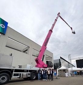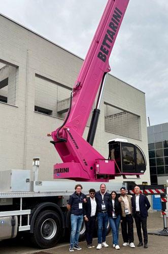 Entre las máquinas más icónicas no podía faltar la MJ 775, la plataforma sobre camión más alta de la gama Multitel, personalizada por A. Bettarini & Figli con un llamativo color rosa y apodada cariñosamente “la Pantera Rosa”.