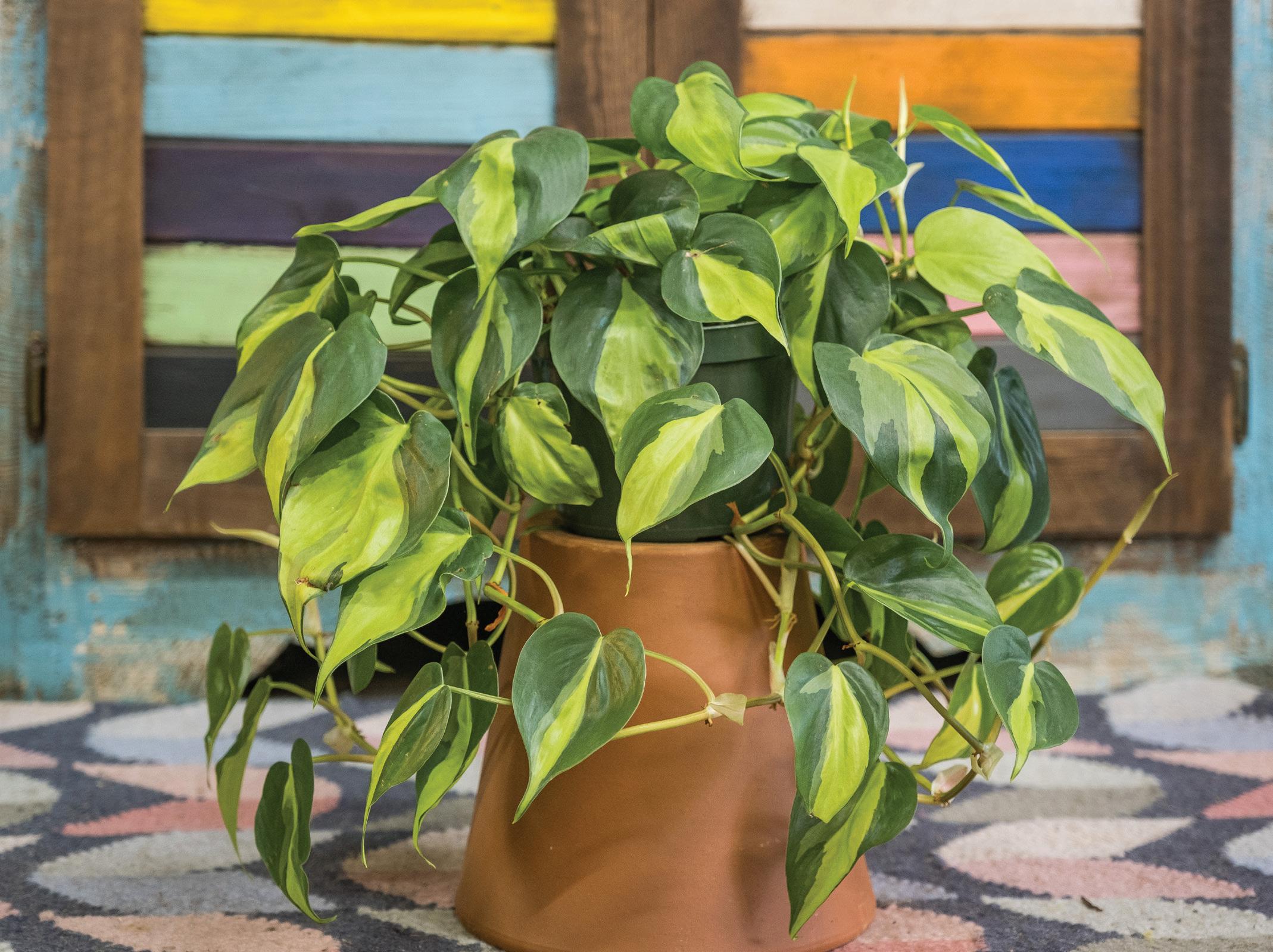 Pothos varieties, sometimes called devil's ivy, are among the most popular houseplants for beginners because they are straightforward to grow. It grows only six to eight feet as horizontal ground cover, but the trailing and climbing vines can grow as long as 40 feet. It does best in filtered light, with high humidity, and will survive a wide range of environmental conditions. The soil should be well aerated. Plants should be allowed to dry out slightly and watered only when the soil is dry. Keeping houseplants out of direct sunlight is vital to avoid scalding or causing the leaves to brown. Soil moisture meters can help people determine a watering schedule and fertilizing plants is another tip to promote