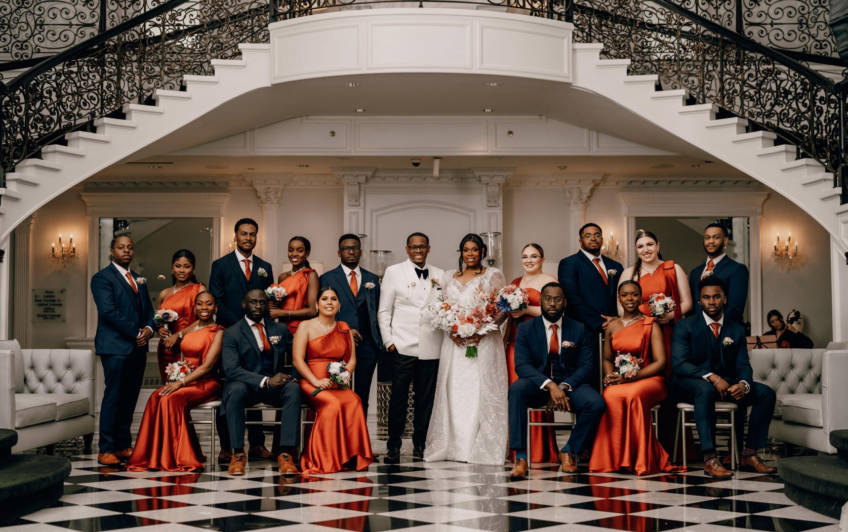 Their wedding was a seamless blend of culture, tradition, and luxury. To honor their ancestors and heritage, they included the tying of the knot, tasting of the elements, and pouring of libation ceremonies. During the reception entrance, African drummers drummed powerfully as the wedding party and newlyweds entered.