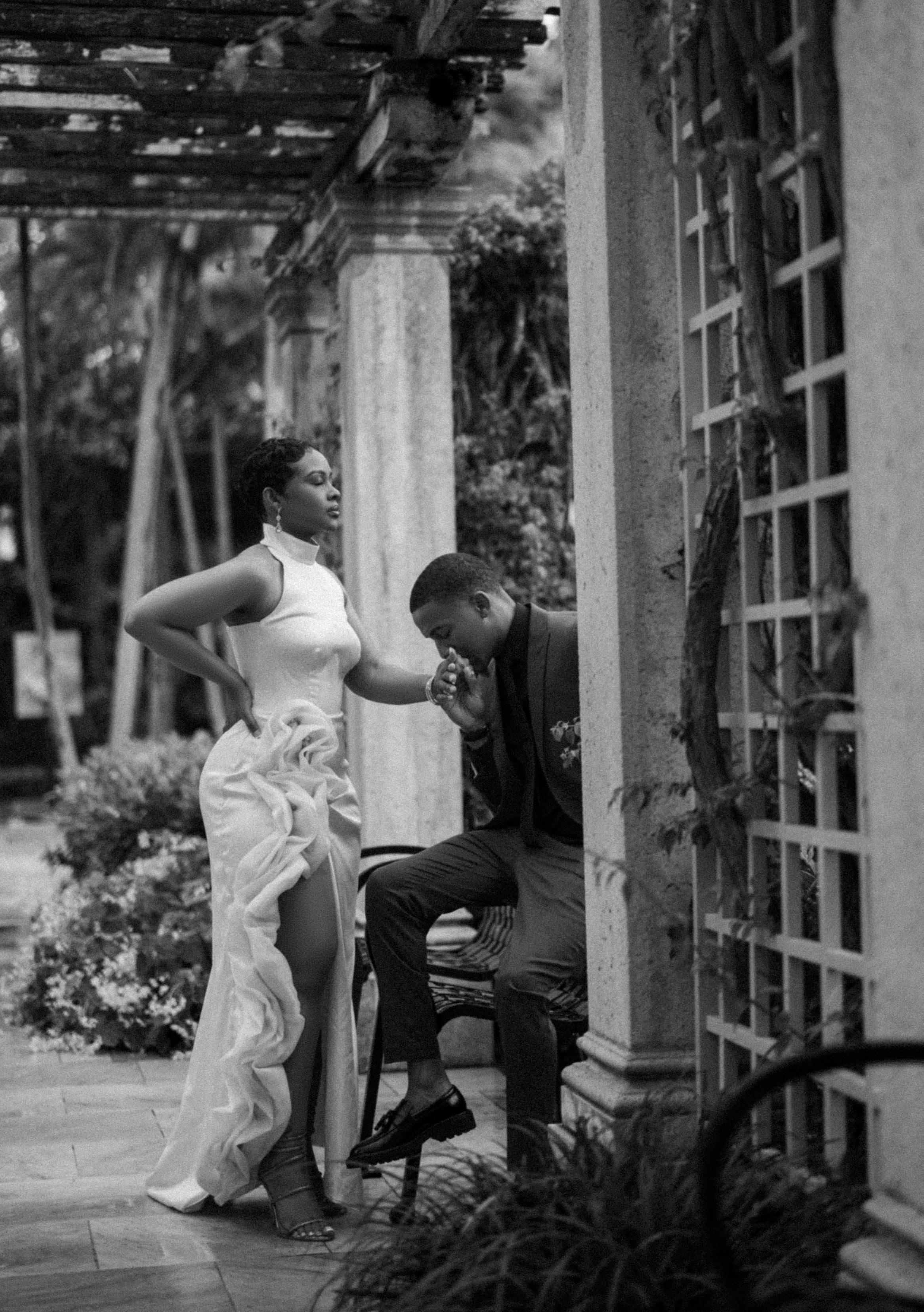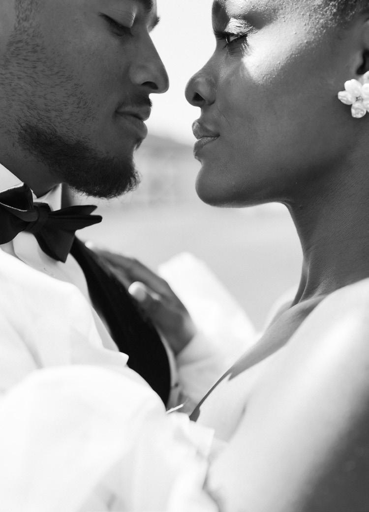 On February 24th, 2024, the couple tied the knot in a black and white modern wedding in Tampa, Florida, with pops of vibrant color throughout. They incorporated their shared Haitian roots into their music and food with a special Konpa choreographed first dance to “Pi Bon Moman M Pase Se Ave-w” by Delly Benson and worked with a Haitian caterer to create an authentic wedding menu. They also handed out mini bottles of Kremas - a sweet and creamy liqueur originating in Haiti - made lovingly by their mothers as wedding favors.