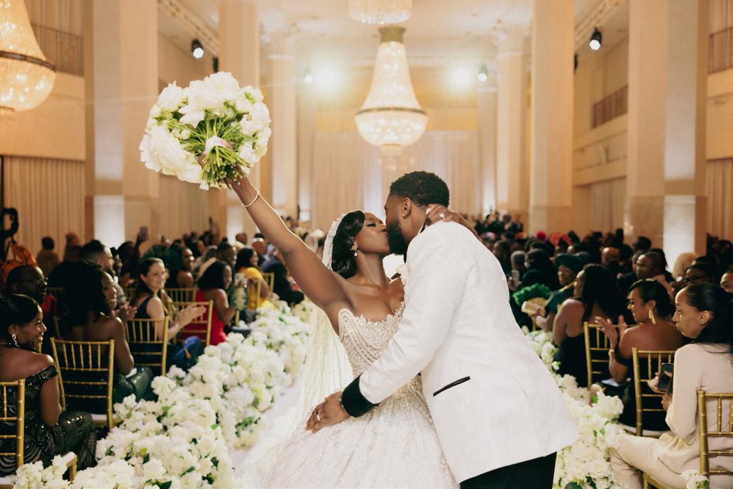 The couple made it official and said their “I do’s” in a royal white wedding at The Addison Park in New Jersey. Since the wedding had a royal theme, Uchenna decided that her best choice would be to go custom and get her wedding day look made by luxury bridal designer Jean-Ralph Thurin.