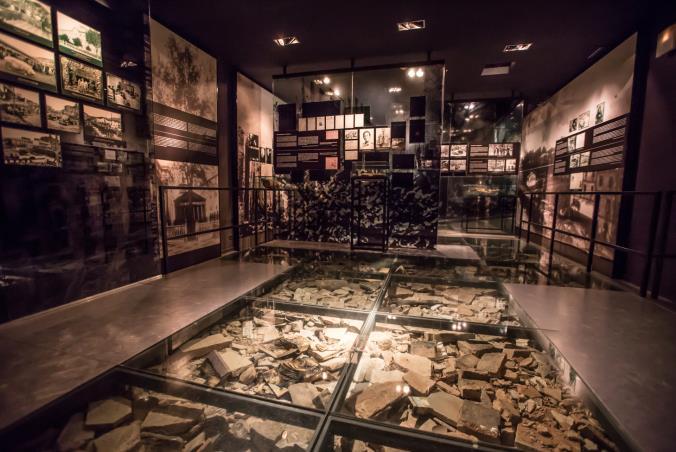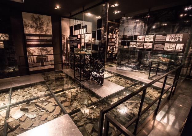1. solairuko gela batek, Historia gelak, kristalezko zorua du, eta kontrastea ez da beti nahikoa edo erreflexuak sor daitezke.