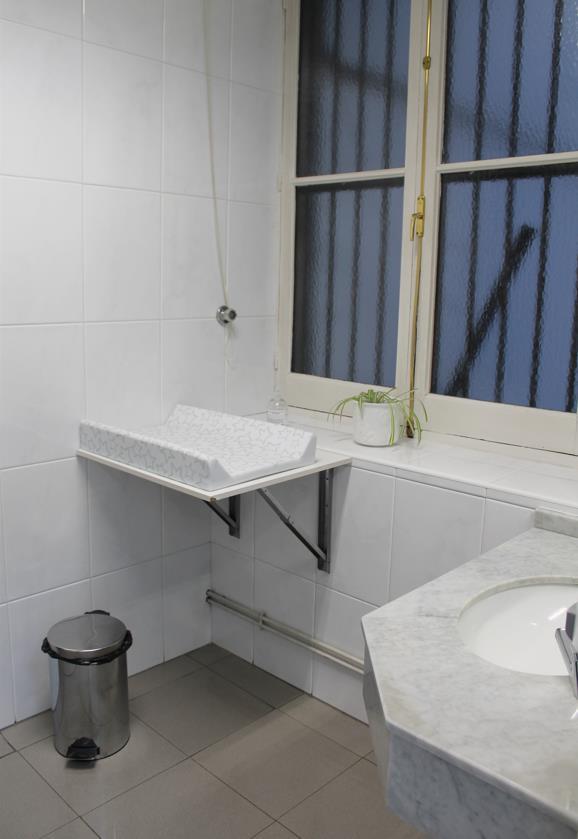 Harrerako solairuan dagoen komun egokitura sartu aurretik, gela txiki bat dago haurtxoen aldagailua, pixoihalen edukiontzia eta konketa dituena.
