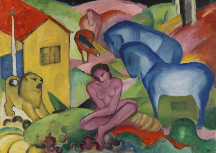 The French and Central European expressionist movements at the beginning of the 20th century defended an anti-naturalist conception of form and colour to represent the inner vision of the artist. In room 32, landscapes by Derain, Kirchner or Schmidt-Rottluff converse with paintings of nude subjects in nature by Pechstein, Kirchner or Müller and still lifes by Beckmann or Nolde. In the next room, the utopian expressionism of Kandinsky, Macke, Marc or Klee leads to the first suggestions of abstract art. Alongside them, frenzied and unstable paintings by Grosz, Feininger and Meidner reflect the transformation of cities into large metropolises.