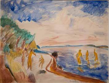 Erich Heckel Bañistas en la playa , 1913 Acuarela y lápiz sobre papel, 38,5 x 49,5 cm Museo Nacional Thyssen-Bornemisza, Madrid