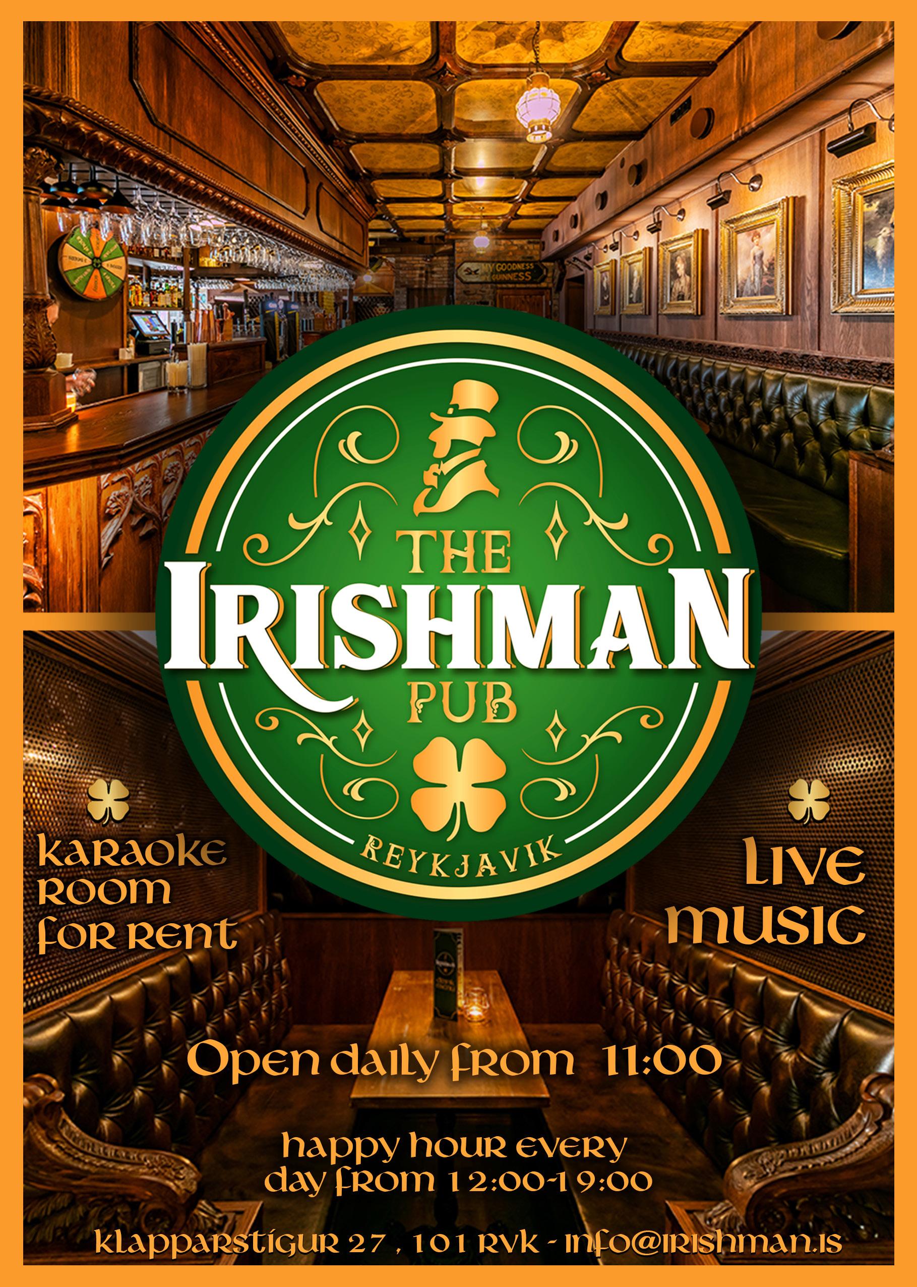 An Irish-style pub in downtown Reykjavík. Happy hour every day from 12PM to 7PM! Guests can enjoy a game of darts, listen to live music Thursday to Sunday evenings, spin the wheel of fortune and you can even book a private karaoke room! Sláinte.