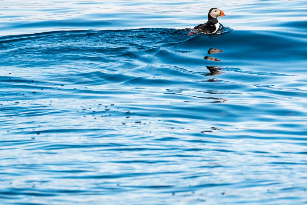 of puffin in the world. Holding court in the Pacific Ocean are the stunningly quaffed Tufted Puffin and the Horned Puffin, which look very similar to their Atlantic cousin save for a black horn of skin above the eyes of the adults.