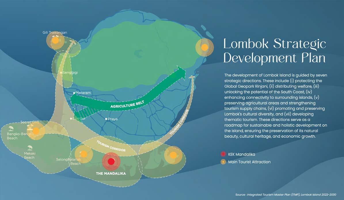 Recent discussions with the Indonesia Tourism Development Corporation (ITDC) suggest that the global infrastructure program for Mandalika is expected to achieve over 75% completion by 2035. This timeline is closely tied to the development of hospitality, services, and entertainment facilities within the masterplan, with intensive communication to attract international and national investors.