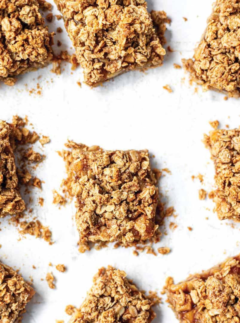 These bars are the perfect combination of a crisp and a pie, and fully embrace the flavours of fall with rich, comforting spices and the crunch of apple throughout. They’re flakey, crumbly and taste of maple, cinnamon and nutmeg with underlying flavours of coconut and vanilla.