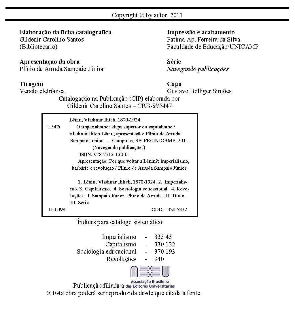 17 Lênin, V. L., Prefácio ao Folheto de N. Bukhárin, A economia mundial e o imperialismo in Obras Completas,vol.XXIII,Madri:AkalEditor,1977,p.184.