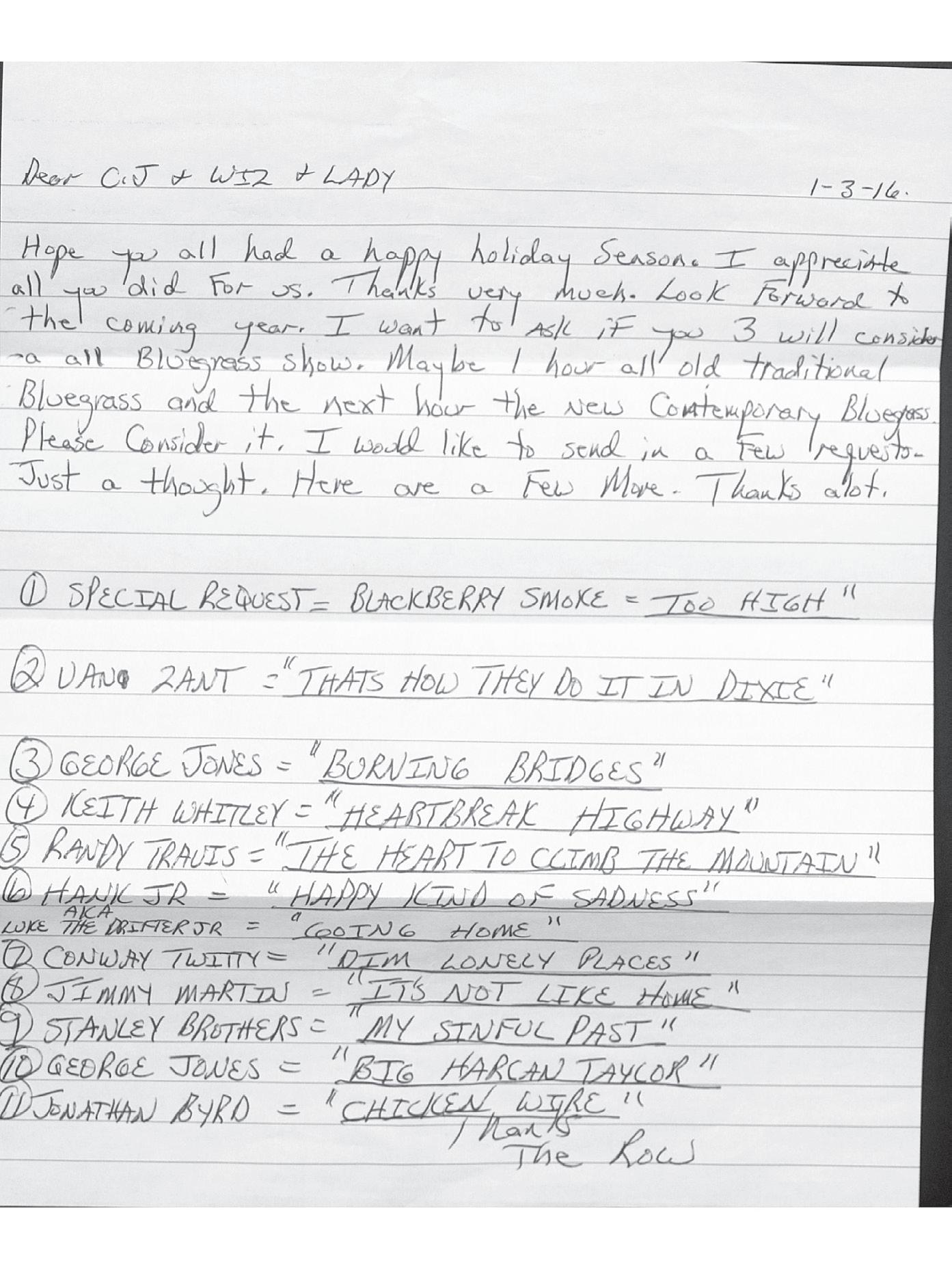 Sweet Anne RichDJ CJ: “The show is for the fans, all the listeners that call and write in, make the show what it is... I look forward to reading “The Row’s” letter... and playing three or four of their song requests each week. “