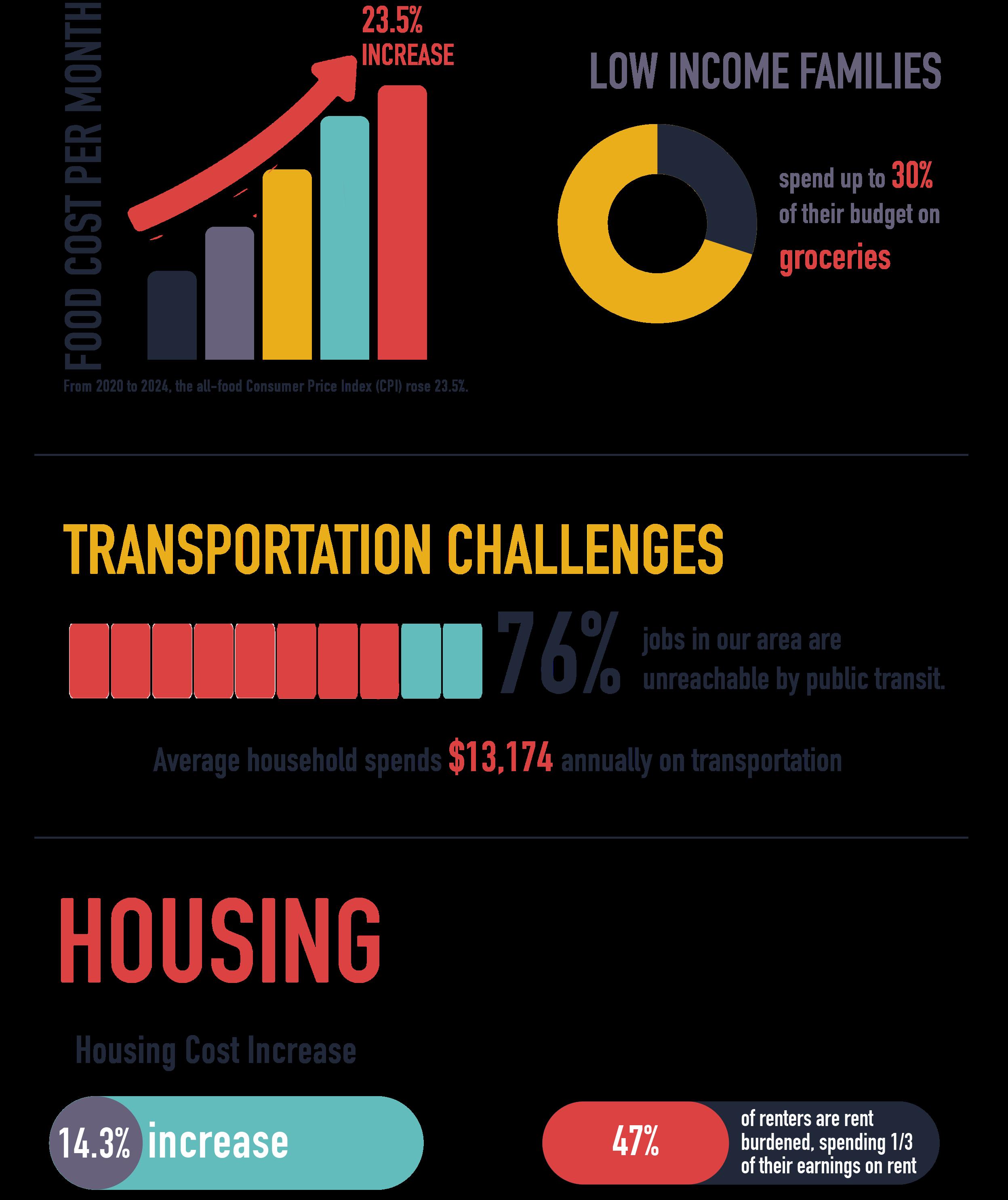 As inflation continues to rise, the effects are being felt acutely in our community. Families are grappling with increasing costs of essential goods and services, further heightening their financial challenges. With rising housing and transportation costs, many individuals are at risk of falling deeper into poverty. These economic pressures can quickly transform temporary hardship into long-term instability.