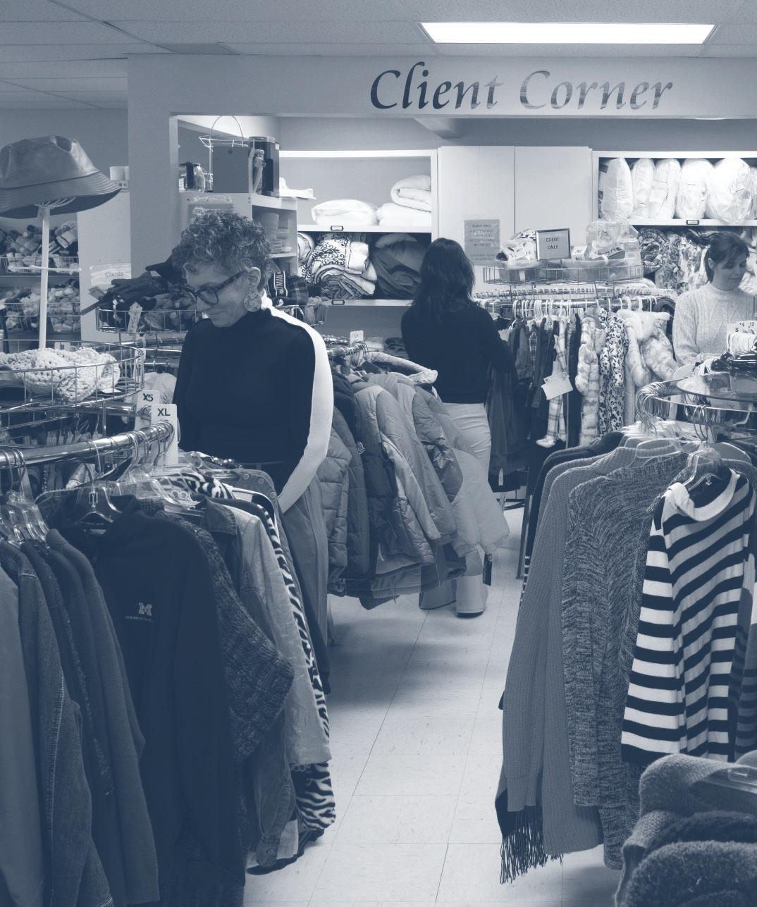 Our Clothes Closet is a retail-like environment offering gently used clothing and small household items for our clients. We also operate as a thrift store for the public, with funds going directly back to our clients.