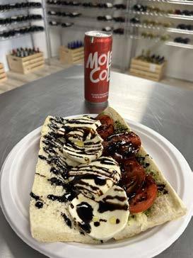 Serving freshly prepared food such as sliders, wings, flatbreads, chili lime shrimp kabobs and stuffed tater tots.