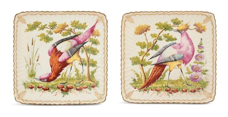 ca. 1830-1860, elaborately painted with birds in the 18th-century Chelsea “Gold Anchor” style, bearing gold anchor marks.
