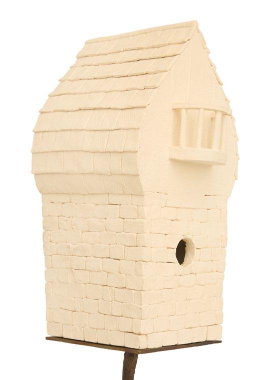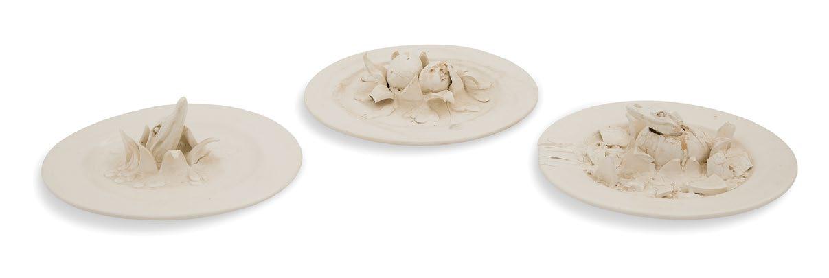 Preferring to watch his compositions evolve as he worked, Fleming rarely created conceptual sketches of his work. While he used color and glazes in his early work, he eventually chose to do without them altogether, allowing his pieces to capture nature’s textured realism. Patient and dexterous, Fleming skillfully leveraged natural elements in his works –using a feather to impress exact detail on hundreds of tiny clay pieces, then overlapping them to create a bird’s winged surface, for example.