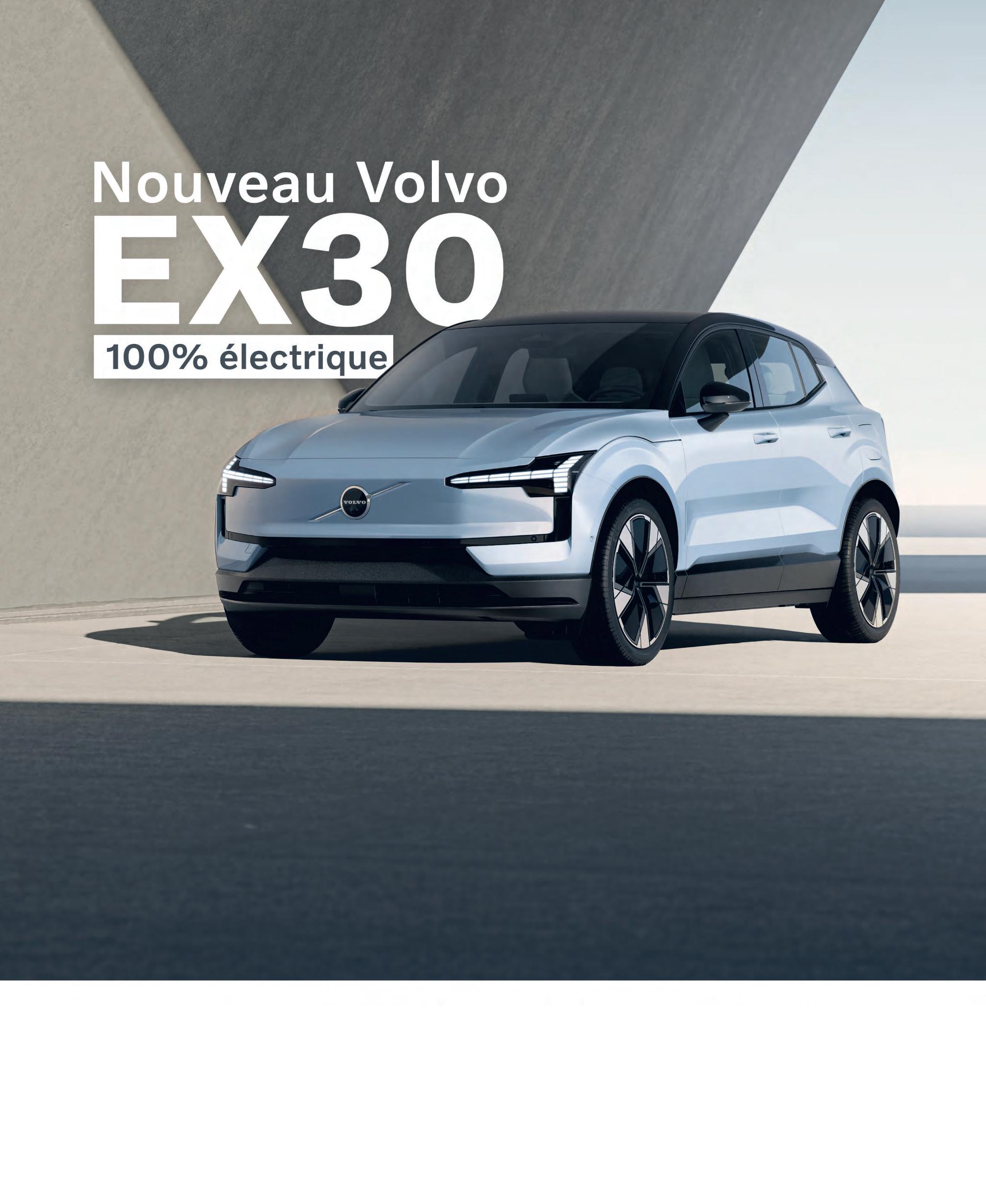 Modèleprésenté: VolvoEX30Ultra avec options, 1er loyer de 6000€ puis36loyersde 455€. Cycle mixteWLTP: Consommation électrique (kWh/100km): 17-17.7. CO2 en phase de roulage (g/km): 0. Autonomie électrique (km): 335-476. Données en cours d’homologation. VOLVOCARS.FR