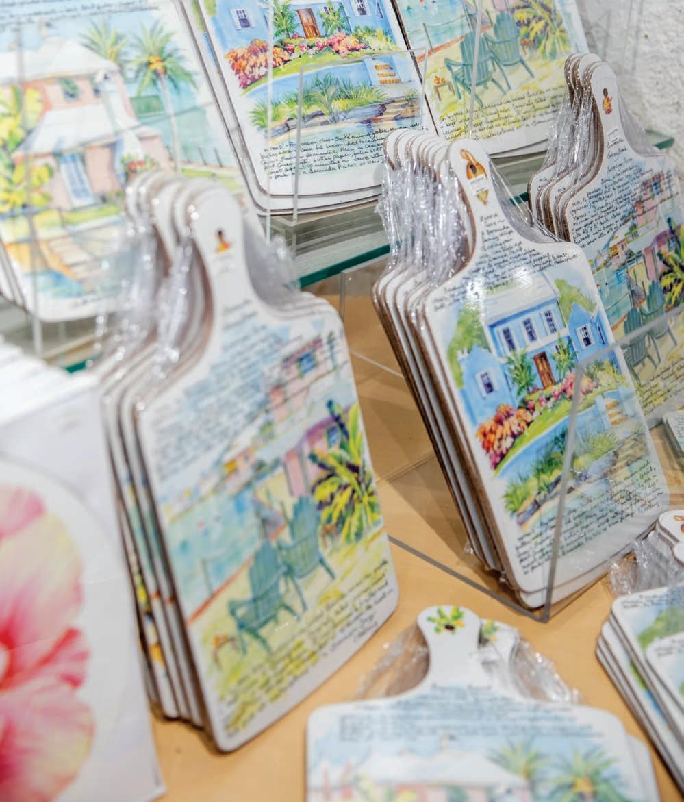 Clockwise from top left: Artwork courtesy of Masterworks Museum of Bermuda Art / Charles Hawthorne The Emerald Wave , Alexandra Mosher Studio Jewellery, Meredith Andrews, Crisson Jewellers