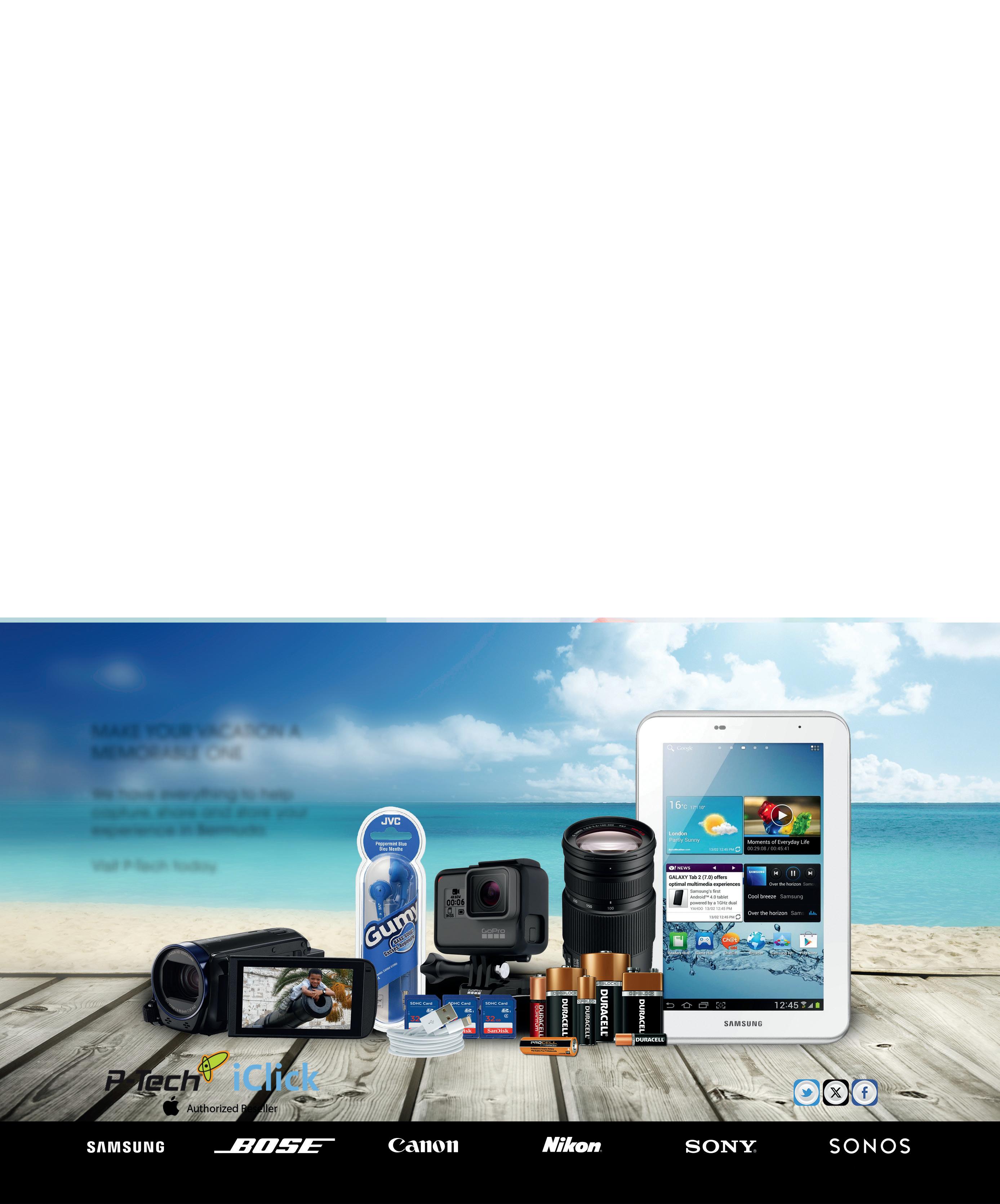 solution and the island’s premier provider of consumer electronics. As an authorised dealer for many reputable brands, including Bose, Sony, GoPro, RCA, Nikon, Canon, Samsung, and Apple, P-Tech delivers a wide selection of goods for home, office, and travel. Whether speakers, TVs, digital cameras, camcorders, smartphones, tablets, laptops, or accessories: #PTechHasIt. P-Tech is conveniently located in Hamilton and is open Monday through Saturday from 9 a.m. to 5 p.m.