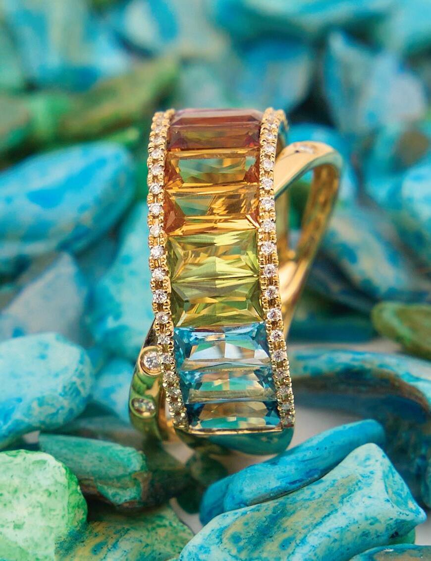 — well known for their collection of authentic coins, including gold doubloons and silver pieces of eight salvaged from sunken galleons, which they mount on pendants, earrings, and cuff links. Davidrose Studio, located in the hub of Hamilton, offers many collections with one titled the Ocean Collection. Pieces are inspired by the vastness of our oceans with necklaces, rings, and bracelets displaying a striking range of turquoise hues. Visitors are drawn to these pieces inspired by Bermuda’s natural beauty.