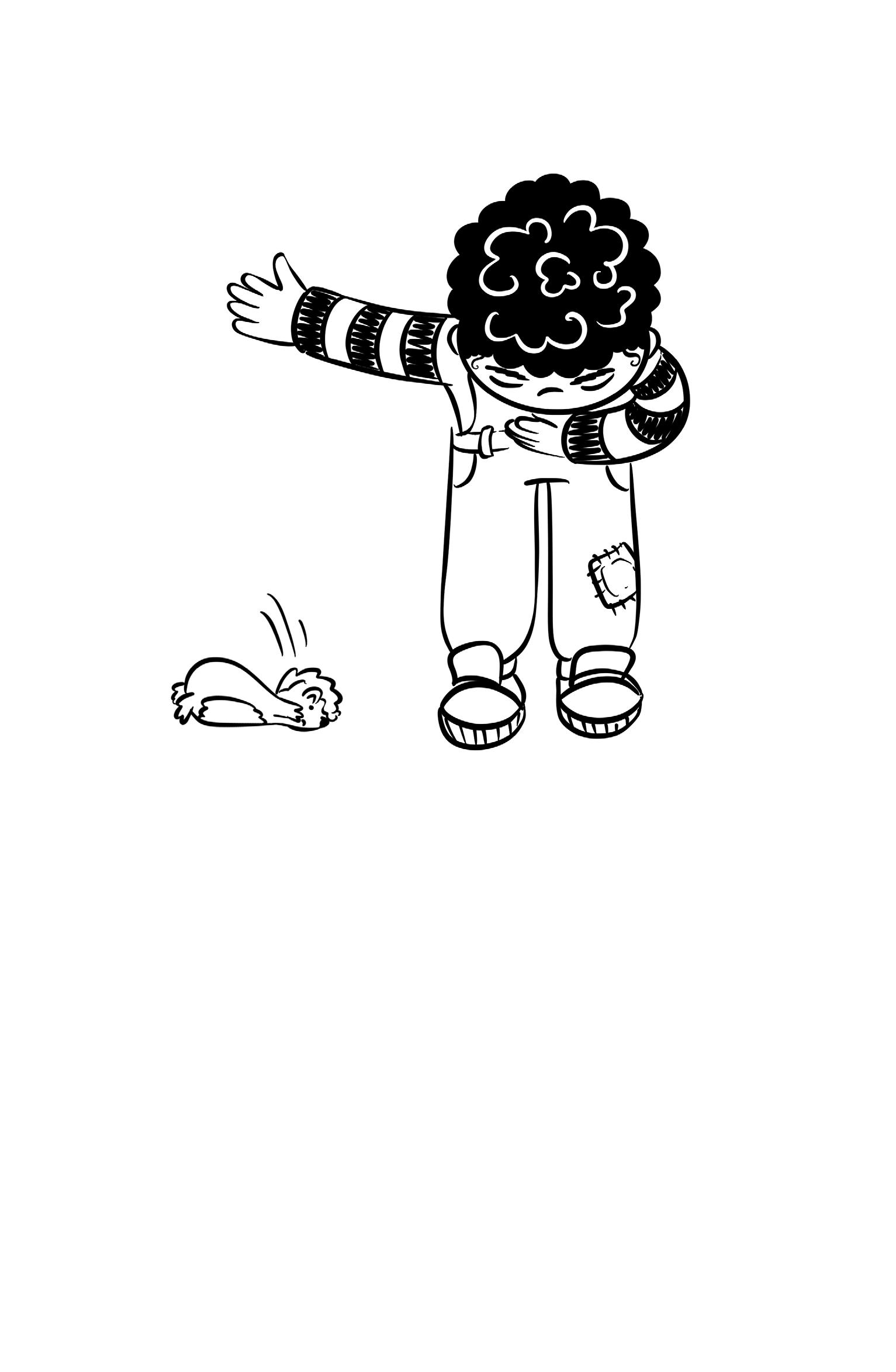 My trick is ruined. Fuzzy looks up at me with his drooping whiskers. He looks like he might cry.