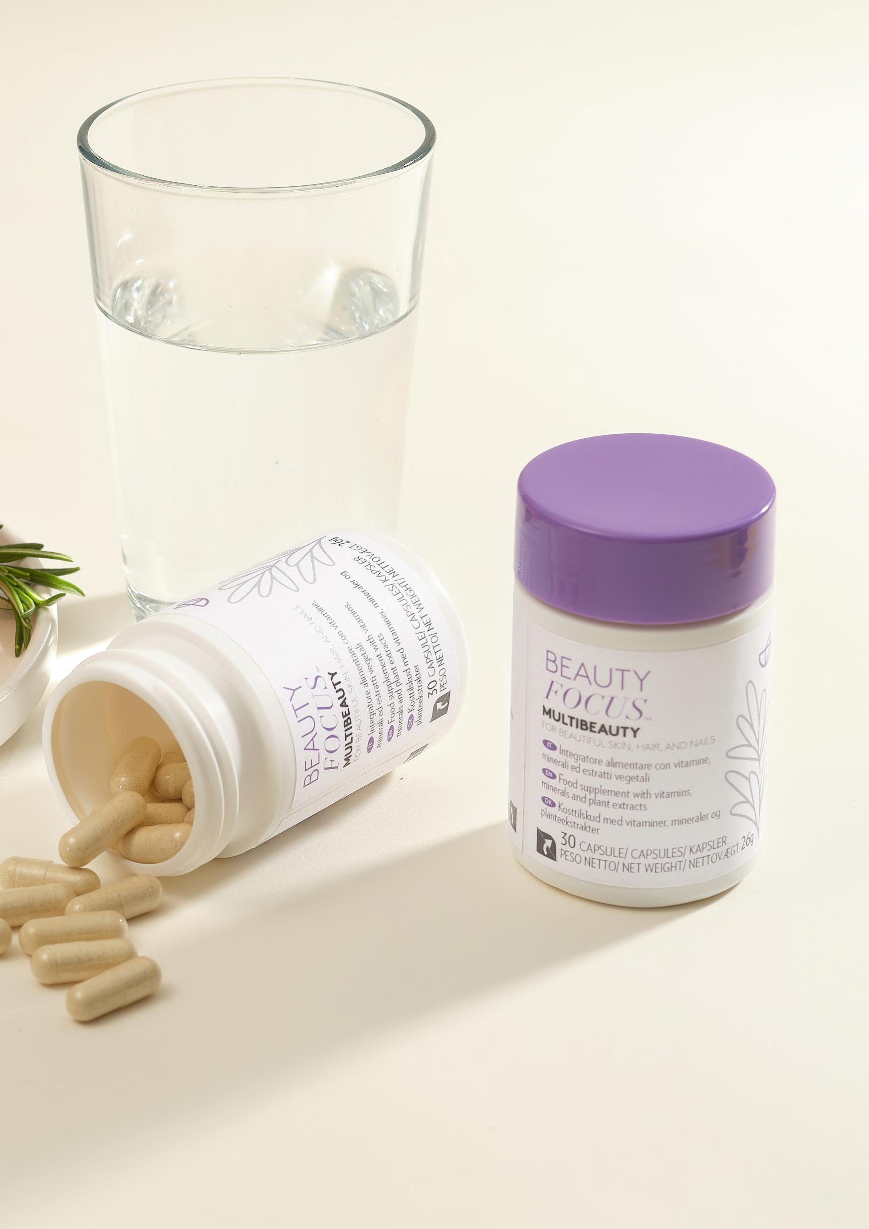 MultiBeauty indeholder zink, der hjælper med at bevare og beskytte dine hudceller mod oxidativt stress, samtidig med at mineralet plejer dit hår og dine negle. Biotin bidrager på samme tid også til hudens og hårets sundhed. Desuden har produktet en ekspertblanding af botaniske midler – rosmarinog grapefrugtekstrakt – som hjælper på forekomsten af rynker omkring øjnene og på hudens elasticitet. På denne måde bidrager de til ungdommeligt udseende hud.*