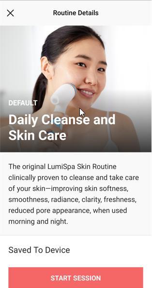 Merk: LumiSpa skal være påslått for å lagre en hudpleierutine. Er apparatet av, dobbelttrykker du på av/på-knappen for å slå det på.
