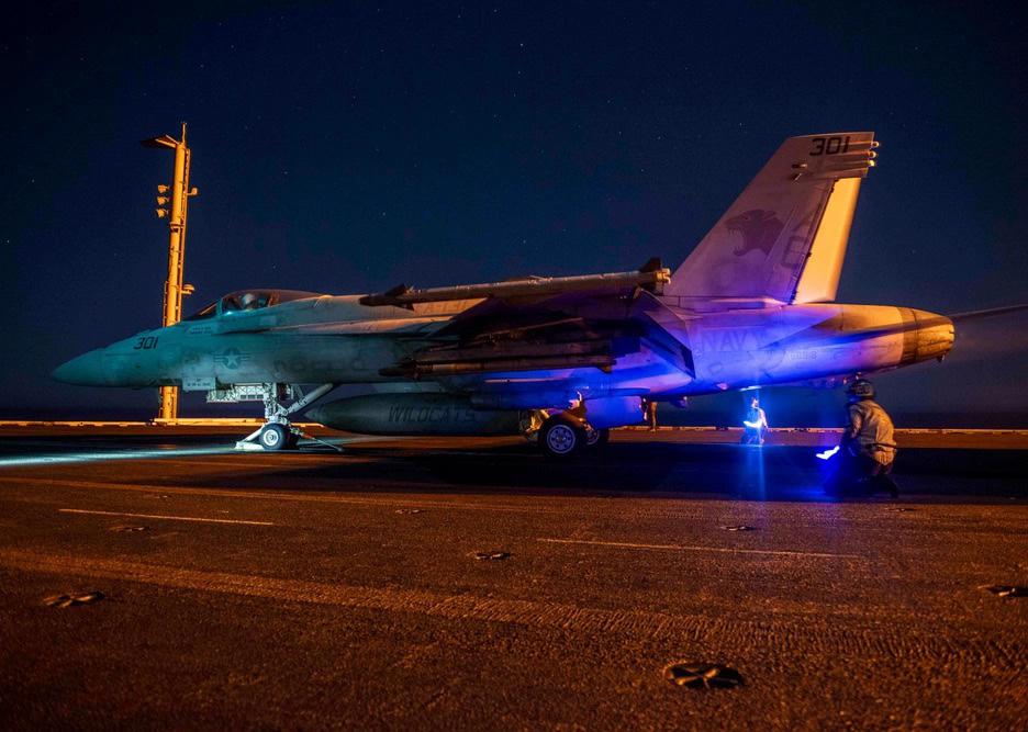 An F/A-18E Super Hornet, attached to the “Wildcats” of Strike Fighter Squadron (VFA) 131 is