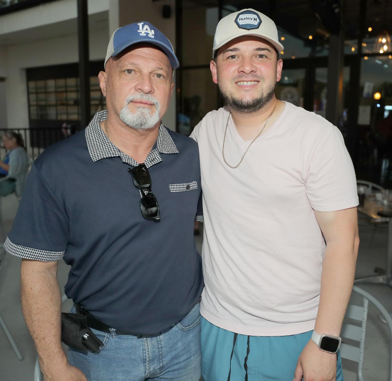 Nelson Caldero, left, and his son, Manuel, right, pose for a photo during the VIP party.