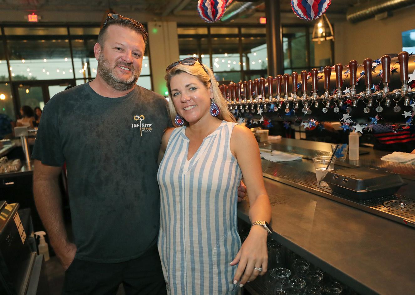 Owners Tom and Kristin McDonald pose for a photo by their large selections of draught beer taps at the bar during the Fourth of July VIP Fireworks Viewing Party at Midtown Station in Ocala, Fla. on Friday, July 4, 2025. [Bruce Ackerman/Ocala Gazette] 2025.