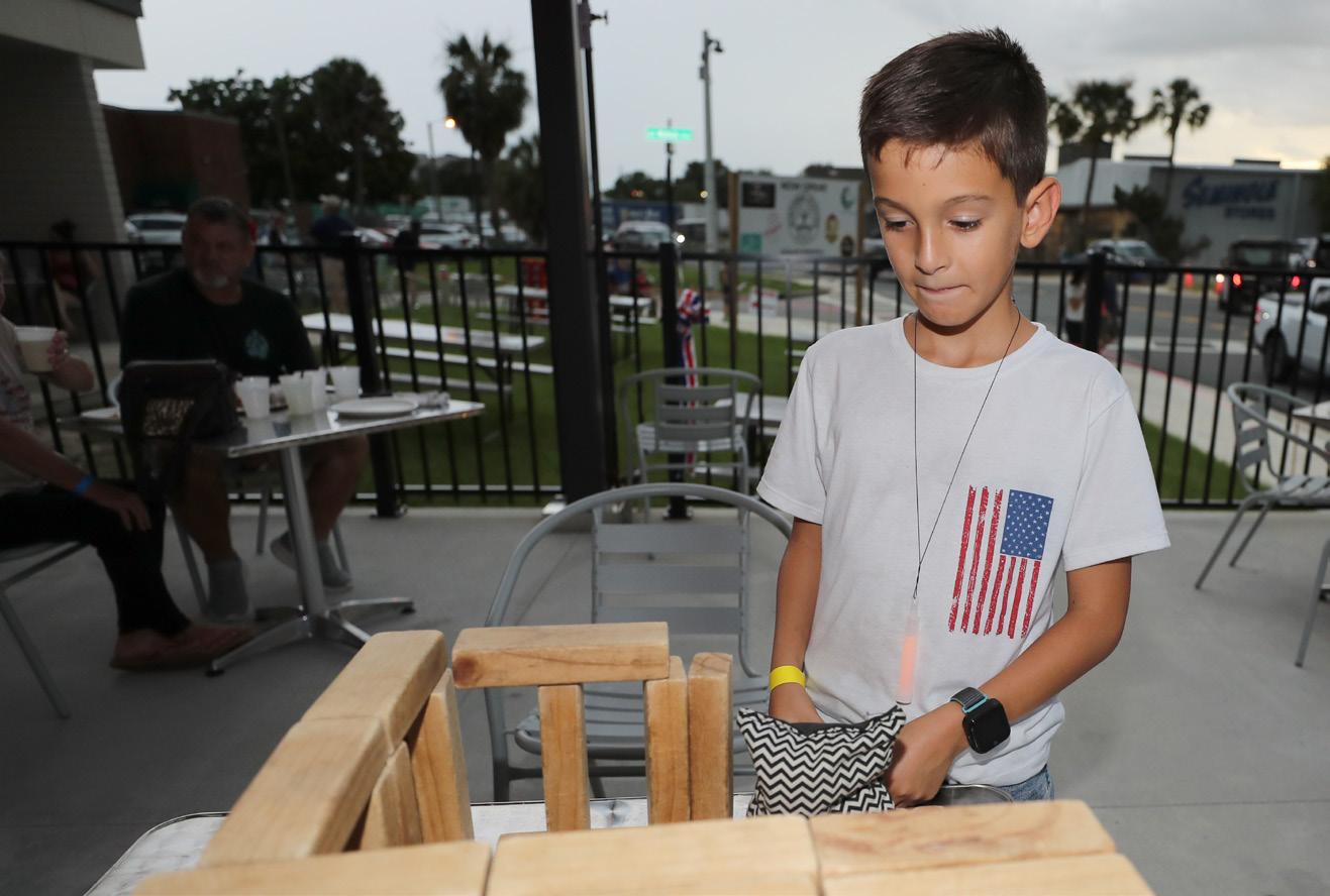 Liam Cortez, 8, plays a game with stacking blocks at Midtown Station on July 4.