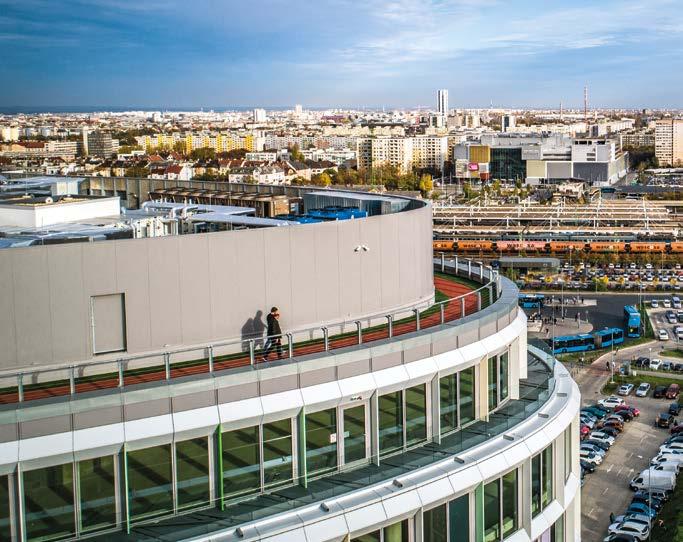 Mivel tud ma egy irodaépület az élre törni, amikor maga az irodapiac hatalmas átalakuláson esik át, részben a világjárvány, részben az energiaválság okozta, folyamatosan változó igények miatt? Erre Budapest legsikeresebb irodakomplexuma egyértelmű választ ad: a már említett elsőrangú lokáción és az ahhoz méltó ikonikus építészeten túl a környezetbarát szemléletével, amelyben mind a természetes, mind a humán környezet azonos súllyal szerepel. A Budapest ONE egyaránt kiemelkedik zöld megoldásaival és a dolgozók komfortját messzemenően figyelembe vevő kialakításával, amit a nemzetközi minősítő rendszerekben elért kimagasló elismerései is bizonyítanak. A WELL Building Platina fokozatú és a BREEAM környezettudatos épületminősítési rendszerben a megpályázottnál magasabb, Excellent minősítést megszerző Budapest ONE-t energiahatékony, intelligens gépészeti megoldások jellemzik, melyeket központi épületirányítási rendszer felügyel. A dolgozók mentális és fizikai komfortját és egészségét számtalan szolgáltatás támogatja, melyek az extra lehetőségeket nyújtó terektől – mint a zuhanyzós öltözők, a zöld belső udvar, a közösségi rendezvényekre foglalható well-helyiség vagy a pazar panorámával rendelkező tetőszinti futópálya az épület teljes kontúrja mentén – e terek felhasználóbarát kialakításáig terjed. Utóbbi olyan „apróságokban” is tetten érhető, mint a parkolószint erőteljes és egyértelmű, a Futureal stratégiai partnere által tervezett szignalizációja.