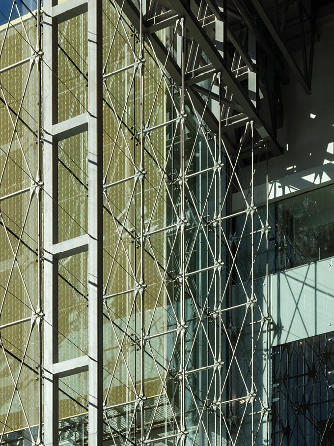 is utalva az épület fő funkciójára. A homlokzati héj a szinteltolást is fel tudja venni, és az épület esetleges továbbépítése során is működőképes. A meghatározó építészeti mintázat a belső terekben a felfestések grafikájában, a hálós szintelválasztó elemek képében és a lépcsőkorlátok mellvédjein több helyen is felbukkan. Külön hangsúlyt fektettek a szignalizációra, erős színek segítik a tájékozódást.