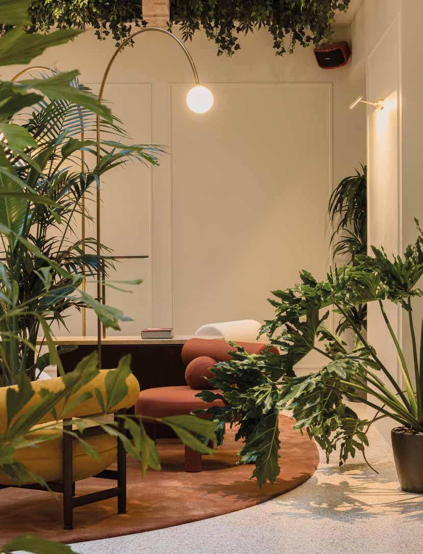 szerves kapcsolatot. A belsőépítészeti nyelvezet következetesen valósul meg a terekben. Legalapvetőbb visszatérő elemek az egyedi tervezésű füstölt tölgy bútorok, a növényzet és az egyedi világítótestek.