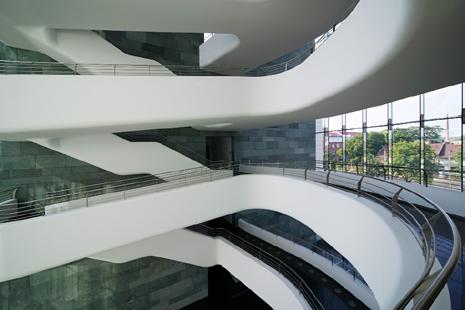 A két tervezõstúdió munkája révén végül párhuzamok, ellenpontok belsõ egyensúlya jön létre, amely valódi építészeti értéket képvisel.