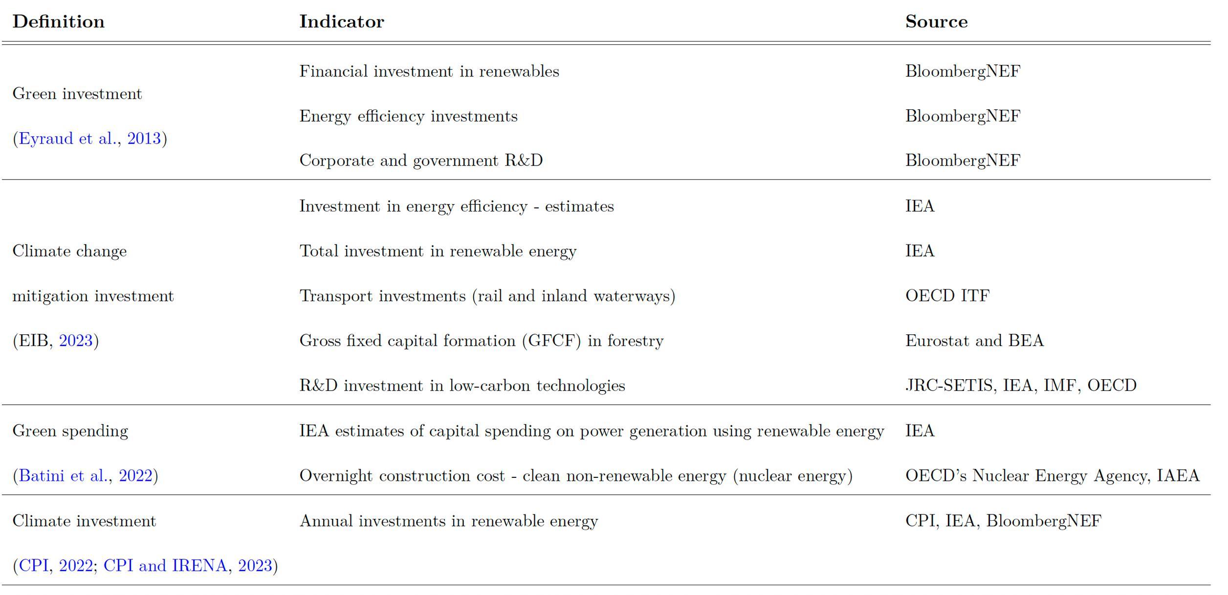 ● It’s important to look at how to further improve green investment measurements to provide data and instruments that allow a better policy evaluation of the green transition and better define environmental mitigation strategies