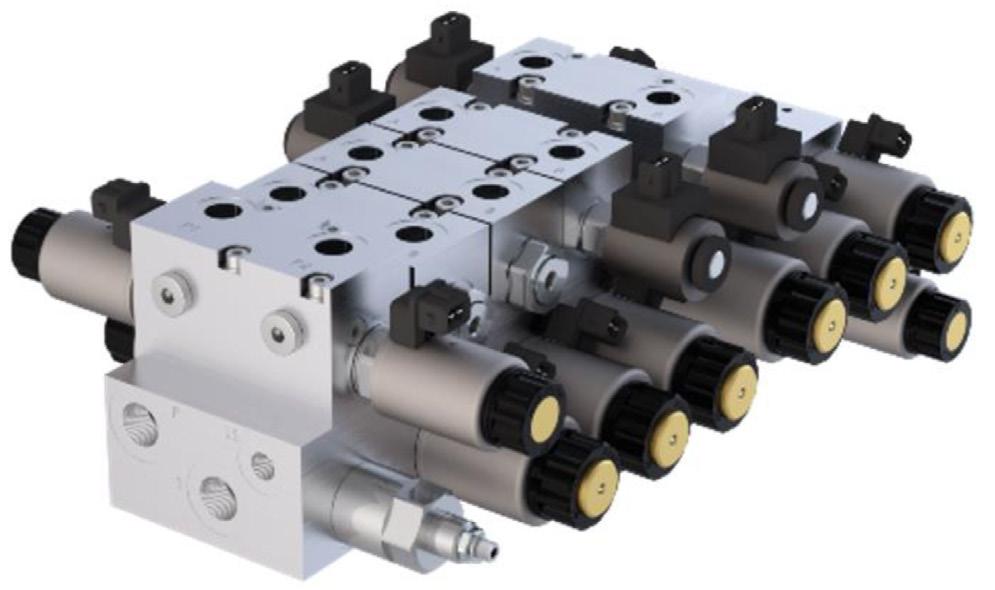 The Compact Mobile Valve (Aluminum) or CMV(A) flexible, modular system solutions for mobile applications. The differentiation by design of these building-block solutions makes a decisive contribution to a cleaner machine layout, easier machine integration, higher level functionality and significant weight reduction for mobile machines. The entire CMV(A) program is available as sectional modules or as customer-specific monoblocks. The focus of the CMV(A) program is on weight optimization, energy efficiency, space-saving footprint, reduced installation cost/effort, long life with high reliability, and functional adaptability, while showcasing the high power density of hydraulics through precise operator control. The initial CMV(A) launch solutions target the common place needs in the four key market sectors of municipal machines, conveyor technology, agricultural and forestry machinery, and construction machinery. Mobile work machines, whether selfpropelled, or towed, must offer operational dependability, consistency for the operator, and precision performance in harsh conditions, and despite increasing electrification, the hydraulics system remain essential for these machines. The CMV(A) puts a spotlight on specific application needs and electro-hydraulic functions, eliminating the need for compromises. Key advantages of the CMV(A) include: Significant weight reduction of the hydraulic equipment thanks to the lightweight design; Increased flexibility offering multiple options, enabling the fastest possible adaptation to changing customer requirements thanks to the modular system design, consisting of monoblocks and sectional blocks; Improved energy efficiency through optimum design and "tuning" of the valve technology; Shortening of the time-to-market period through product availability and rapid support.