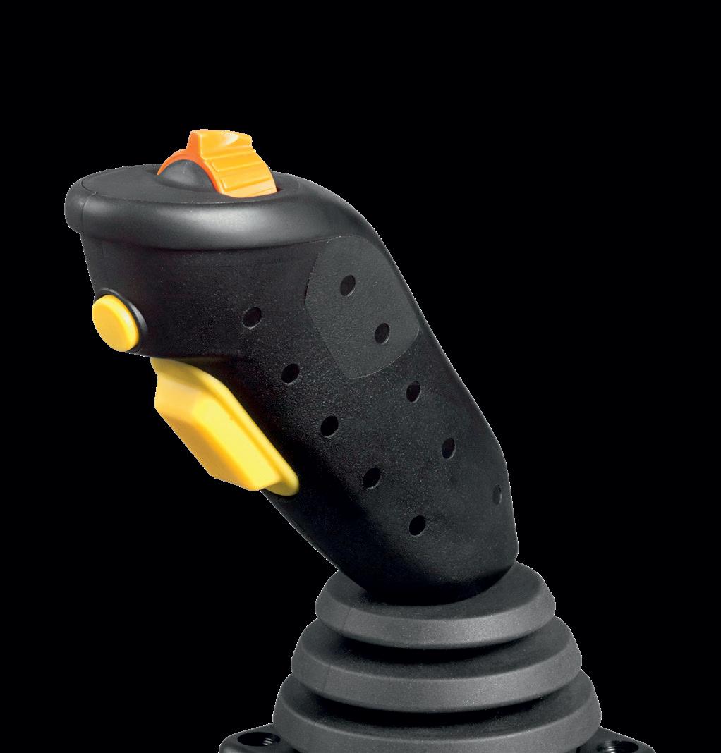 The new XP series multifunction handle is large enough to integrate multiple APEM components, including proportional rockers, pushbuttons and miniature thumbsticks, while still remaining small enough to mount into panels and arm wrests where space is limited.