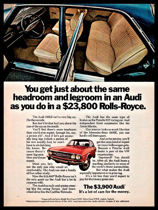 O sedã 100 é capítulo inicial da história moder na da Audi e provou que a marca poderia competir de igual com a sua conterrânea Mercedes-Benz