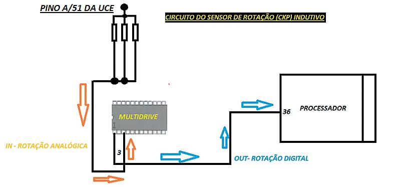 Formatação base dos circuitos - Como os sensores de rotação e fase trabalham com base em distorções é inevitável que haja a geração de interferências elétricas com base em outras distorções existentes além do movimento da roda fônica ou comando de válvulas, como por exemplo, cargas de alternadores, outros chicotes elétricos energizados ou até mesmo vibrações e estímulos físicos. Portanto a primeira parte necessária em um circuito de sensores são conjuntos de capacitores de cerâmica e resistores que combinados entre ligações em série