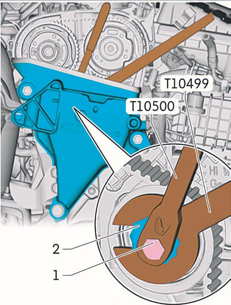 Com as ferramentas T10499 e T10500, o tensor da correia dentada poderá ser posicionado e fixado sem que haja remoção do console do motor.