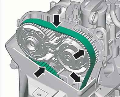 Após retirar a correia dentada do motor, guarde-a, de modo que não seja manuseada por outras pessoas nem contaminada por óleo, inclusive, as peças de contato da correia, como engrenagens das árvores de comando das válvulas, engrenagem da árvore de manivelas e tensor.
