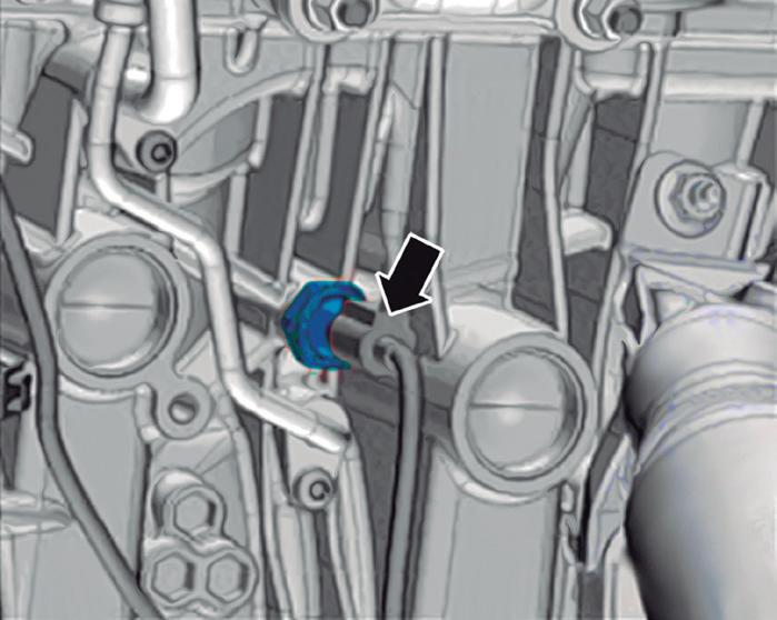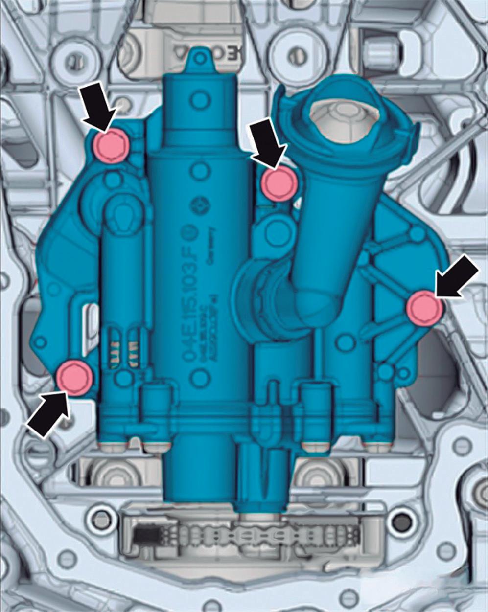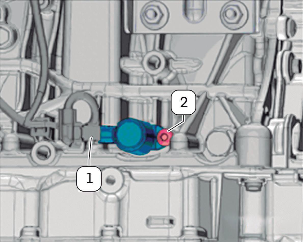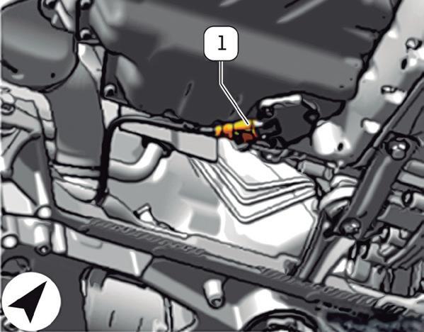 • F1 – Interruptor de pressão de óleo: informa a ECU do motor a partir de uma pressão de 2,4 bar. O interruptor F1 está instalado no lado esquerdo do motor, próximo à válvula N428. Para o seu acesso, você terá de remover o defletor de calor do semieixo.