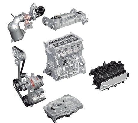 Para que o motor 1.4 TSI possa oferecer alta eficiência, ele recebeu uma árvore de manivelas forjada e com furos nos moentes para alívio de peso. Os pinos de fixação dos pistões às bielas receberam um recobrimento de DLC (Diamond Like Carbon), que consiste em uma liga de carbono de alta resistência, a qual promove a redução do atrito, o que permitiu descontinuar o uso das buchas dos furos dos pistões. Esse motor é, ainda, equipado com um sistema de injeção direta de combustíveis, o qual, na versão Flex, dispensou o uso do tanquinho de gasolina para as partidas a frio. Ele também tem um turbocompressor de geometria fixa que possui a válvula Wastegate (válvula de descarga), controlada eletricamente pelo atuador de controle da sobrealimentação – V465, gerenciado pela unidade de comando do motor – J623.