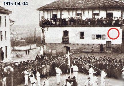 Iragorri zortzi anaiak, zortzikoa dantzatzen: Inazio, Antonio, Joxe, Lukas, Bautista, Joxe Leon, Xabin eta Higinio. Txistulariak, Joxe Mendizabal eta Arozena semea eta aita.