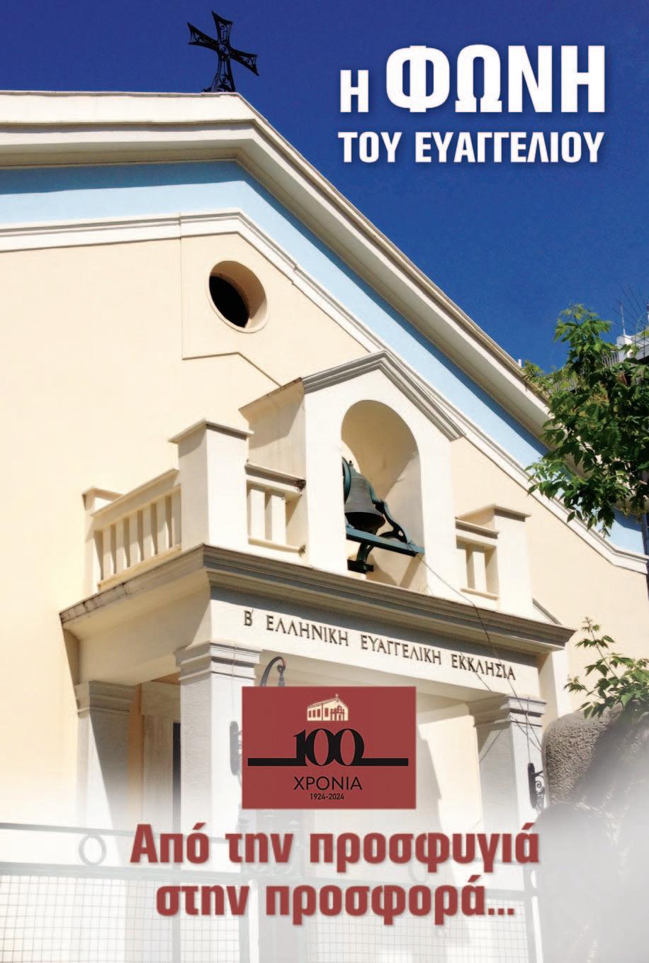 ΜΑΪΟΣ 2024 | 1 Από την προσφυγιά στην προσφορά... Χριστός Ανέστη! Σε μια πραγματικότητα με παγκόσμιες αναταράξεις, που φέρνουν οι συνεχιζόμενες συγκρούσεις στην Ουκρανία και τη Μ. Ανατολή, με τραγικά γεγονότα που φτάνουν μέχρι την καρδιά μας και μας συγκλονίζουν Με την υποτίμηση των ηθικών αξιών και της πίστης, που φέρνει πρωτόγνωρες τραγικές εκπλήξεις στην καθημερινότητά μας... Με την ακραία παραβατική συμπεριφορά παιδιών, εφήβων και νέων, με τα συνεχόμενα κρούσματα κακοποίησης ευάλωτων ατόμων, με τις αναταράξεις στην οικογένεια και τόσα άλλα δεινά, η παρουσία μιας εκκλησίας που γιορτάζει 100 χρόνια ζωής είναι ένα φως ελπίδας, καθώς στηρίζεται και συνδέεται με το γεγονός της ανάστασης του Χριστού. Τρία μεγάλα μηνύματα σηματοδοτεί η γιορτή της 100ετηρίδας της Β΄ Ελληνικής Ευαγγελικής Εκκλησίας στην Αθήνα, που στο ταξίδι της αυτό φωτίζει με την πορεία και πολιτεία της και με την ευλογημένη προσφορά της, Την ενότητα της Εκκλησίας των συνειδητών πιστών χριστιανών Μια μικρή εκκλησιά με τη μαρτυρία της μέσα στην πόλη ενώνει τη μεγάλη κοινότητα των πιστών της πόλης με την παγκόσμια οικογένεια των χριστιανών, με βάση και θεμέλιο τον Λόγο του Θεού Την έμπνευση της πορείας του Ελληνισμού από τις χαμένες πατρίδες της Μικράς Ασίας στην ψυχρή -κάποιες φορές- μεγαλούπολη της Αθήνας χτίζοντας μια καινούργια φωλιά και κάνοντας μια νέα αρχή, όπως κάθε χρόνο σημειολογικά μας το θυμίζει η δύναμη της άνοιξης, που φέρνει ζωή και χρώματα μετά από τον μουντό χειμώνα Την ευλογία της εξωστρέφειας, με παρουσία που αγγίζει τις ανάγκες της πόλης με μια προσφορά αγάπης Η προσφορά της εκκλησίας σε κάθε γωνιά της πατρίδας μας μέχρι τη μαρτυρική Κύπρο του 1974 και ακόμα μακρύτερα, με καινοτόμες δράσεις που διακονούν κάθε μέρα ευάλωτους ή και απλούς, συνηθισμένους ανθρώπους της γειτονιάς μέσα σε μια απρόσωπη μεγαλούπολη, κάτω από τον ιερό βράχο της Ακρόπολης... Ευχόμαστε από καρδιάς η πλούσια ιστορία της τοπικής αυτής εκκλησίας να γίνει δύναμη προσφοράς και παράδειγμα μίμησης για τα χρόνια που έρχονται σε πολλούς, μέχρι τη Μεγάλη Γιορτή στη δόξα... Στην ηγεσία και τα μέλη της ευλογημένης αυτής πνευματικής κοινότητας ευχόμαστε από την καρδιά μας κάθε ευλογία Θεού και κάθε πρόοδο! Γιατί είναι ένα φωτεινό παράδειγμα που δείχνει ξεκάθαρα και ζει τη δύναμη του Αναστημένου Χριστού! Φώτης Ρωμαίος