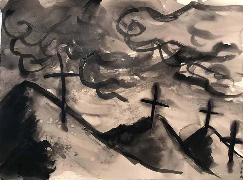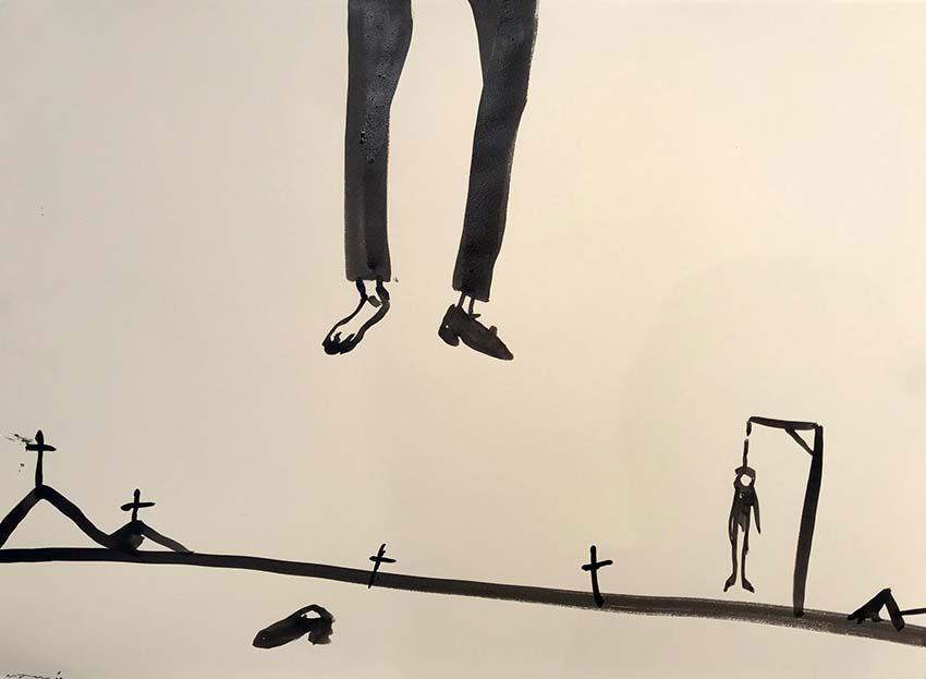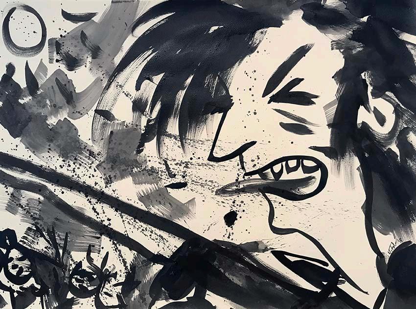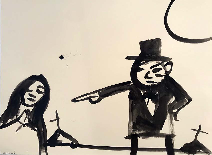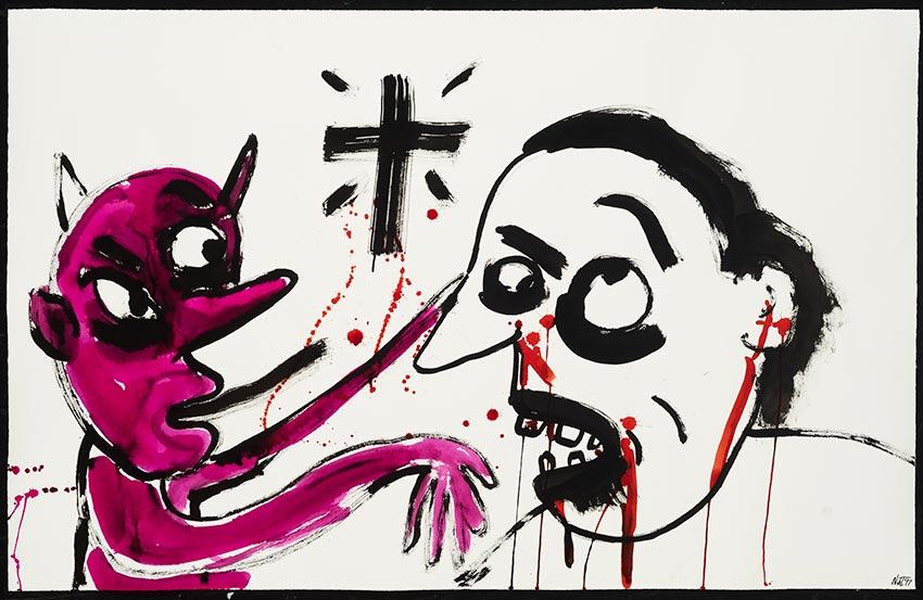 For his fourth exhibition with OLSEN Gallery, the artist presents Between Good and Evil, a curated selection of ink impressions. Each is a play on Taylor’s preferred motifs, and tackles issues whether political, religious, or existential. The deftness of these works attests to the artist’s tremendous skill – in just a few marks, he conjures complex subjects that are equally coherent and captivating.